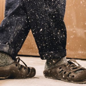 Our u00fcber light and comfy open-air clog gets a nautical-inspired design with Pilgrim Surf + Supply’s version of a brown and white boat shoe.