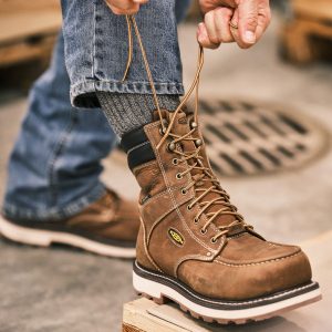 Lightweight comfort meets classic, heavy-duty welted style. This 8u201d waterproof work boot blends burly performance, all-day wearability, and grip of a 90u00b0 heel.