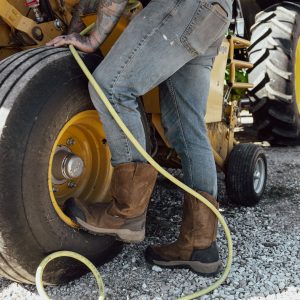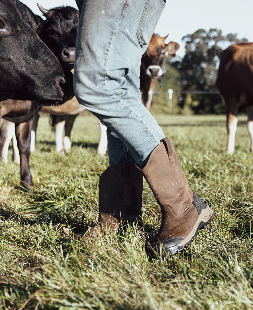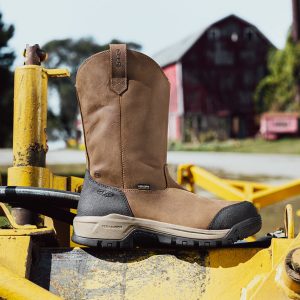 Protects like a work boot, fits like a sneaker. This waterproof pull-on style features a tough leather upper and energy-returning cushioning.
