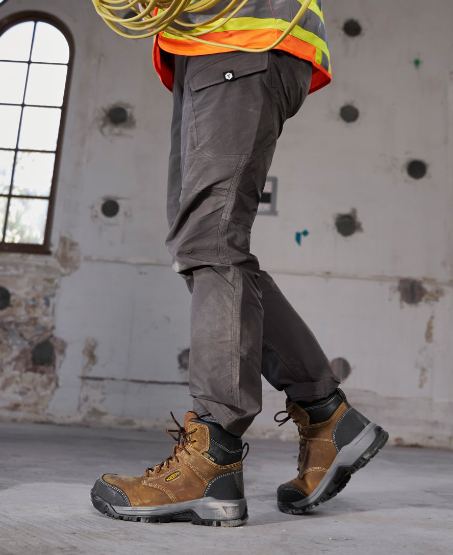 Protects like a work boot, feels like a sneaker, designed for women. This ESD style features a tough leather upper and energy-returning cushioning.